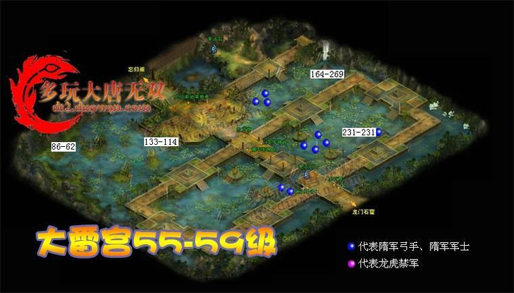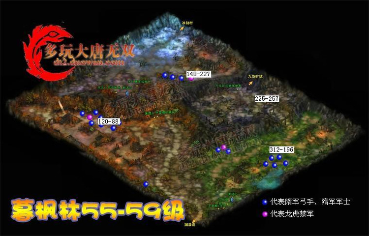 “暮枫林--大雷宫--冰剑村--北邙山寨” 4张图都适合 60级 的玩家去打“龙虎统领”(100%掉落“玄月”)