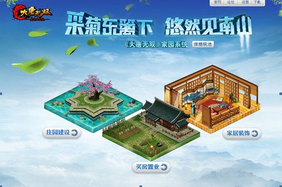 大唐的家园系统主要由庄园建设、买房置业和家具装饰三大部分组成。从庄园建设开始,你就正式告别了“裸婚”时代;买房置业缓解更可以让你拜托“蜗居”生活;家具装饰让你正式步入豪华生活!本期速递,我们就先简要说说【庄园建设】吧!
