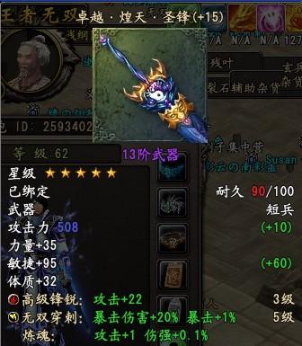 以前金装555、999就是最顶级的金装属性了,现在新装备出了,在5连上面就多了一个5级的无双。前文提到5级魂魄的得法,这里就不多说了,5级魂魄只能对新装备的4级属性使用(相当于以前的5连),让装备属性进一步提高,具体做法,带着你的5级魂魄,还有带有4级金装属性的装备,到名匠,点开: