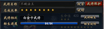第二种是:是用金卡/白金卡喂食转生进度,从而将武将转成三档名将。