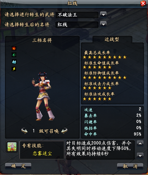 那么之前我给武将所打造的都是关于防御的技能和成长石,因此选择转防御为主的【红线】